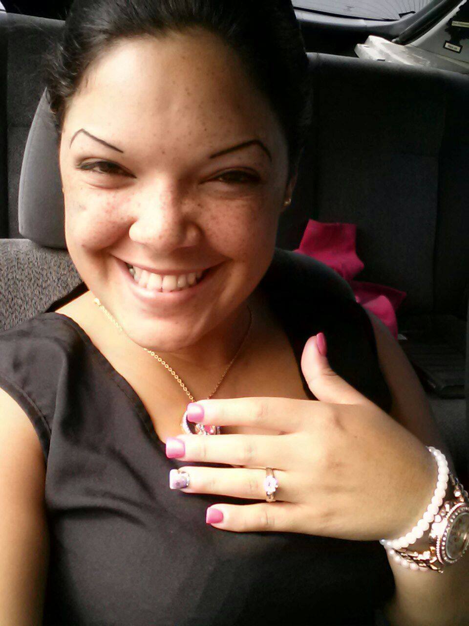 ¿Qué les puedo decir? La foto lo dice todo. Una gran sonrisa y debajo una sortija. No sé cuál de las dos brilla más en este día. Sólo sé que la alegría, nos contagia a todo tren. En este momento le doy gracias a Dios por hacer que mis ojos lloren de emoción. Porque no hay deseo en una mujer que ese de estar comprometida y que con su amado pueda ver el amanecer. Tal parece que fue ayer, cuando soñábamos con esto; ya hoy no es un sueño ni un cuento surrealista, pues a tus brazos llegó, tu príncipe se arrodilló y te pidió casamiento.
