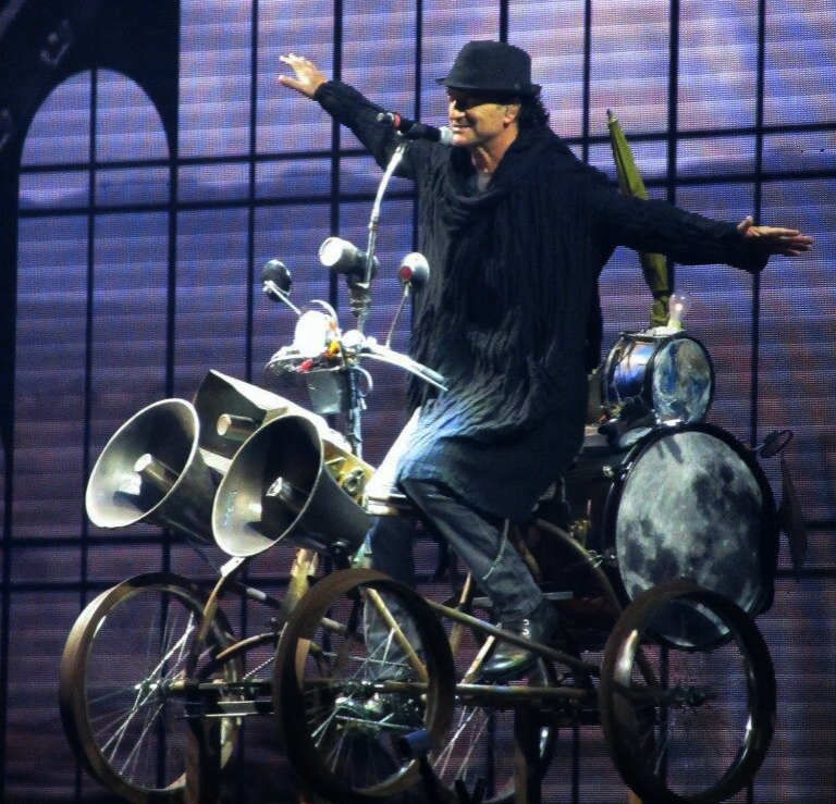 Es difícil saber qué escribir acerca de un concierto que fue mágico, cuando soy una persona sarcástica y cuando soy dueña de este blog. Una quiere ser justa, pero conociéndome como me conozco, sé que mi toque «sexual» lo daré por algún rincón de este escrito. Así que aclarando las cosas, empiezo a contarles acerca de este concierto. El concierto del amor de la vida de muchas y el terror de muchos, empezó con unas imágenes en tarima a las 9:41 de la noche, ni más ni menos. Claro, según mi reloj, que puede estar atrasado o adelantado. A las 9:45 por fin salió y no sólo eso. El protagonista de la noche, apareció en el escenario montado en una gran bicicleta donde interpretó «A la Luna en Bicicleta». El escenario, era enorme, como todo lo que tiene él ;) ¡claro, tiene un enorme talento! Sí, todo lo que el muestra es enorme.