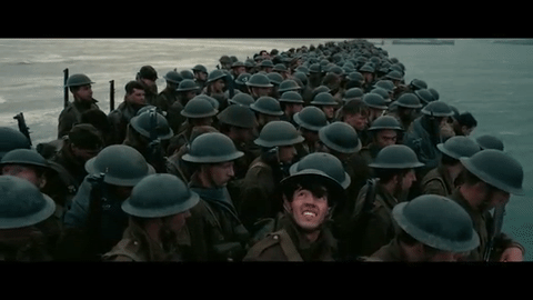 - La evacuación de los soldados aliados, que es una de las mejores escenas, cuanta con 1.500 extras, una grúa y un avión Spitfire.