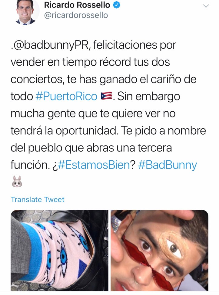 Estoy en cita con el viejo y aunque el día amerita estar pendiente solo a él, hay una cosa que desde ayer me inquieta y me tiene mala. Pensaba que no nos podía ir peor… hasta que el Primer Ejecutivo de esta adorada isla caribeña le suplica a Bad Bunny que abra una tercera función para que más personas pudieran ir a disfrutar de su concierto en el mes de marzo.