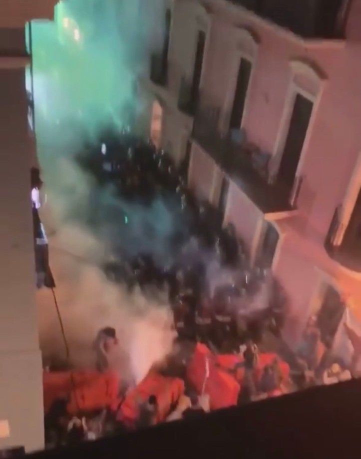 Hay personas tratando de poner una distancia entre la policía y las personas. Vuelven a tirar fuegos artificiales mezclado con gases, la multitud no se aleja ni se quita. Al contrario, canta y se enfrenta a ellos. Demuestran que no hay miedo. Y aunque se escuchan muchos sonidos a la vez y muchos cristales rotos, el pueblo sigue luchando por sus derechos.