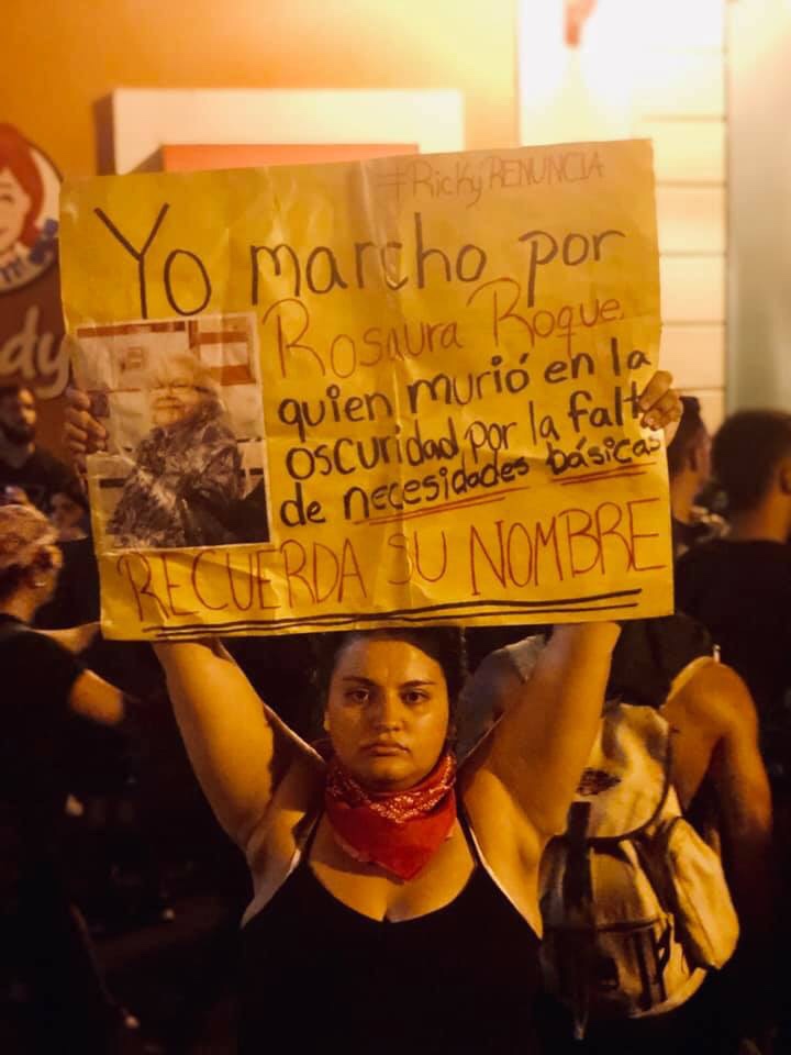 -No hace falta perder a un familiar para sentir repudio por este gobierno. Soy estudiante universitaria y no creo en este gobierno. No es porque sea popular o independentista, es que gracias a ese chat pudimos ver cómo es el gobernador realmente. Odio que se burlen de los demás, de los muertos, de la pobreza, de las desgracias. Estoy aquí por ti y por mí y por todos.