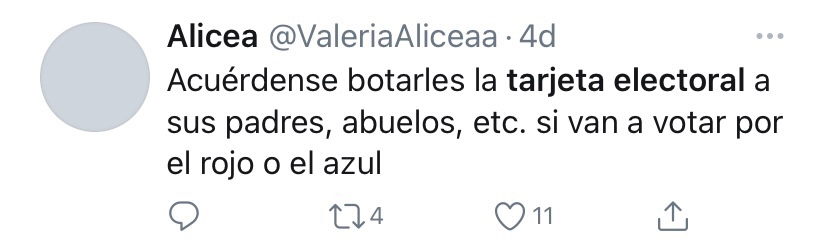 Y uno de esos derechos es VOTAR por las personas que ellos crean son las más apropiadas para llevar las riendas de este país. No importa si botan su voto, si votan por alguien que usted cree que es corrupto, si dañan la papeleta o si son viejitos que ni siquiera saben lo que está pasando actualmente; ellos tienen el mismo derecho que tú porque viven en una democracia.
