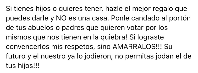 Seamos honestos, ese vecino de 60 años está trabajando porque todavía no se ha podido retirar; así que está en su derecho a votar. Ese abuelito de 84 años que vive contigo trabajó y está en todo su derecho a votar. Tus padres de 68 y 59 años, te criaron y están ayudándote a cuidar a tus hijos; tienen derecho a votar.